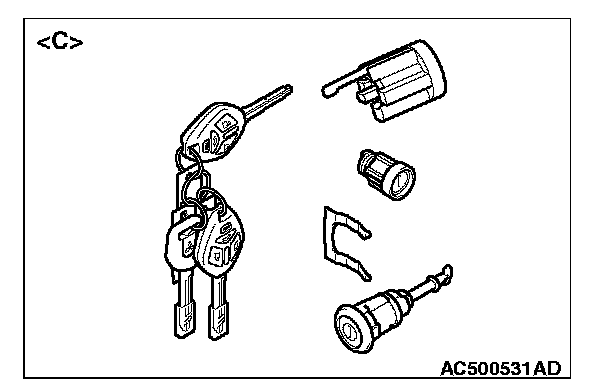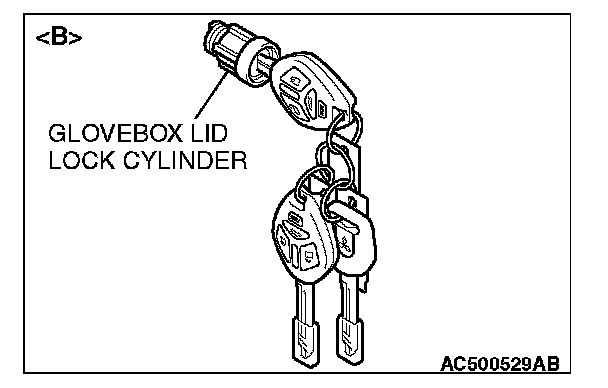 - Do not register the ignition keys other than the ignition key that starts the engine. (When replacing by the door lock key cylinder of illustration or the glove box lid lock cylinder of illustration , the engine cannot start if the encrypted code is registered with the bar code on the ignition key supplied simultaneously. If the ignition key using for each lock cylinder and starting engine is used as a common ignition key, replace by the key set of illustration .)
