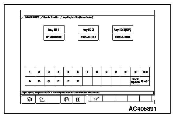 8. Enter the ID on the bar code plate which is attached to the ignition key, and press the OK button.