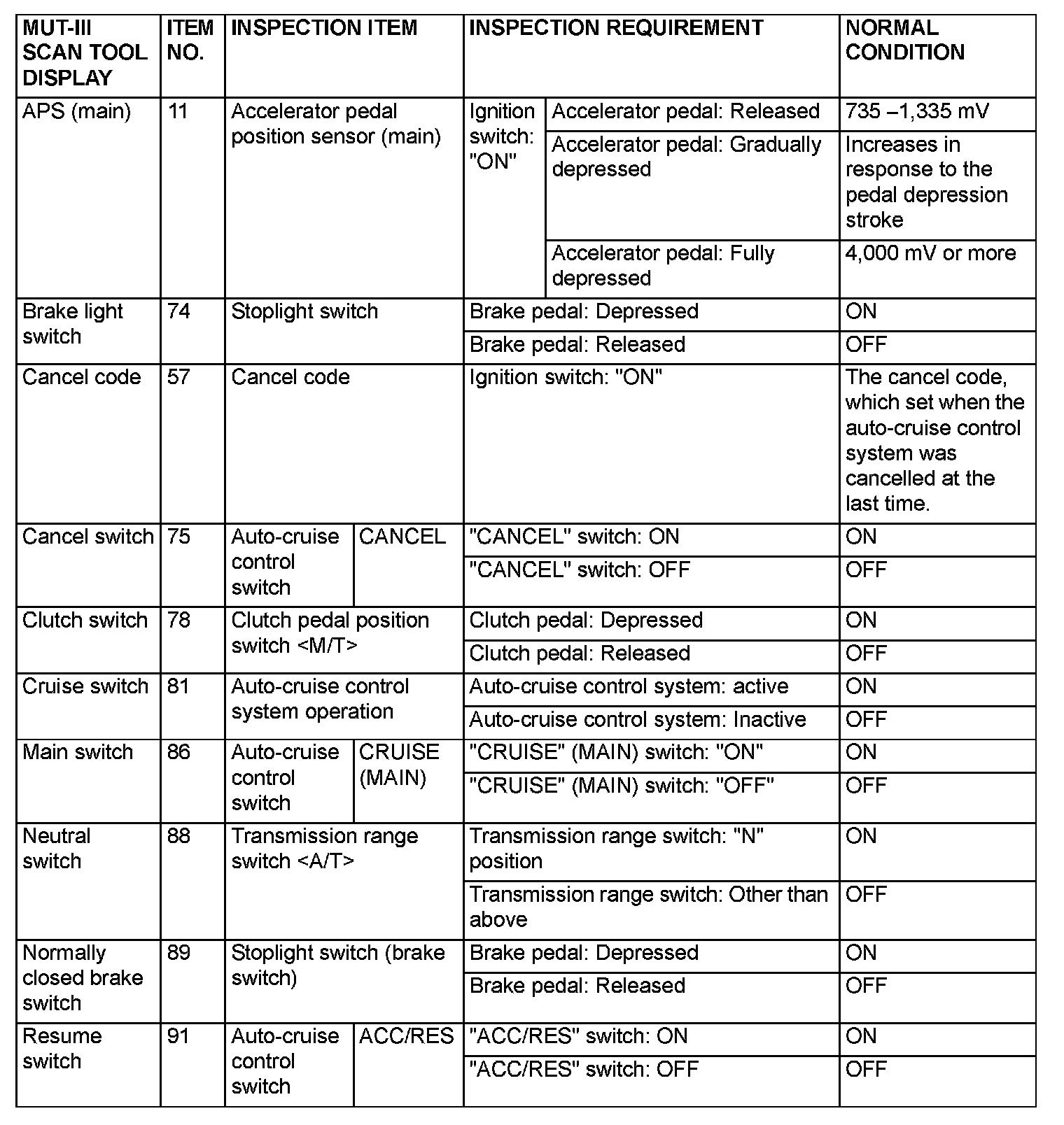 NOTE: *:After the inspection is completed, disconnect the throttle position sensor connector, and then delete the diagnostic trouble code using scan tool MB991958.