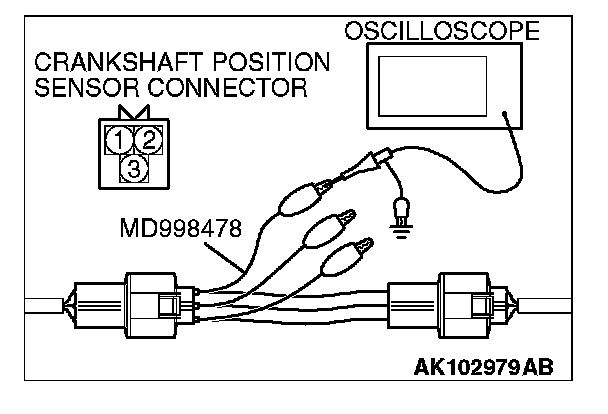 3. Disconnect the crankshaft position sensor connector, and connect the test harness special tool (MD998478) between the separated connector.