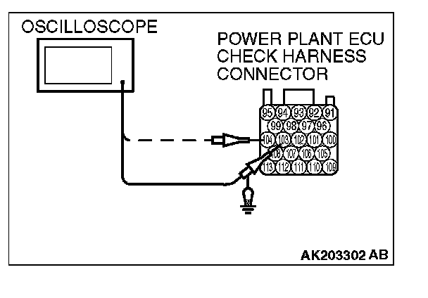 3. Connect the oscilloscope to check harness terminal No. 103. (Check the crankshaft position sensor signal wave pattern.)