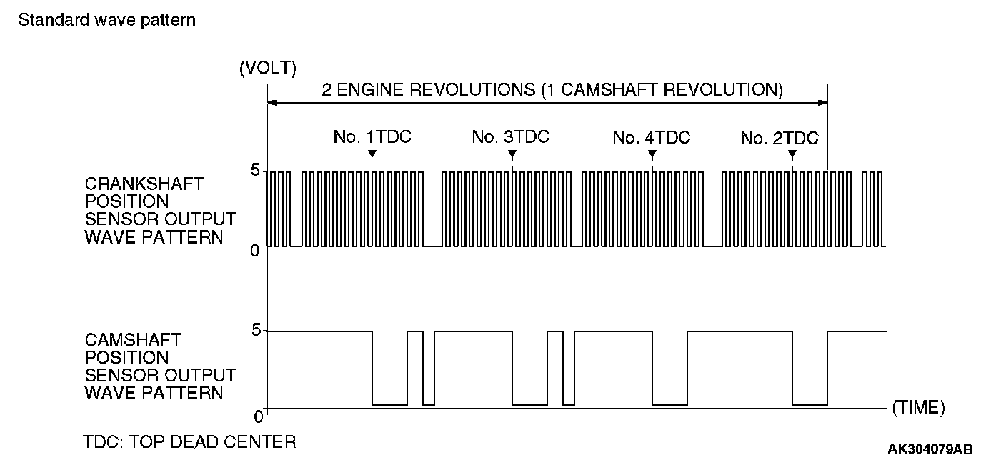 INSPECTION PROCEDURE USING AN OSCILLOSCOPECAMSHAFT POSITION SENSOR AND CRANKSHAFT POSITION SENSOR