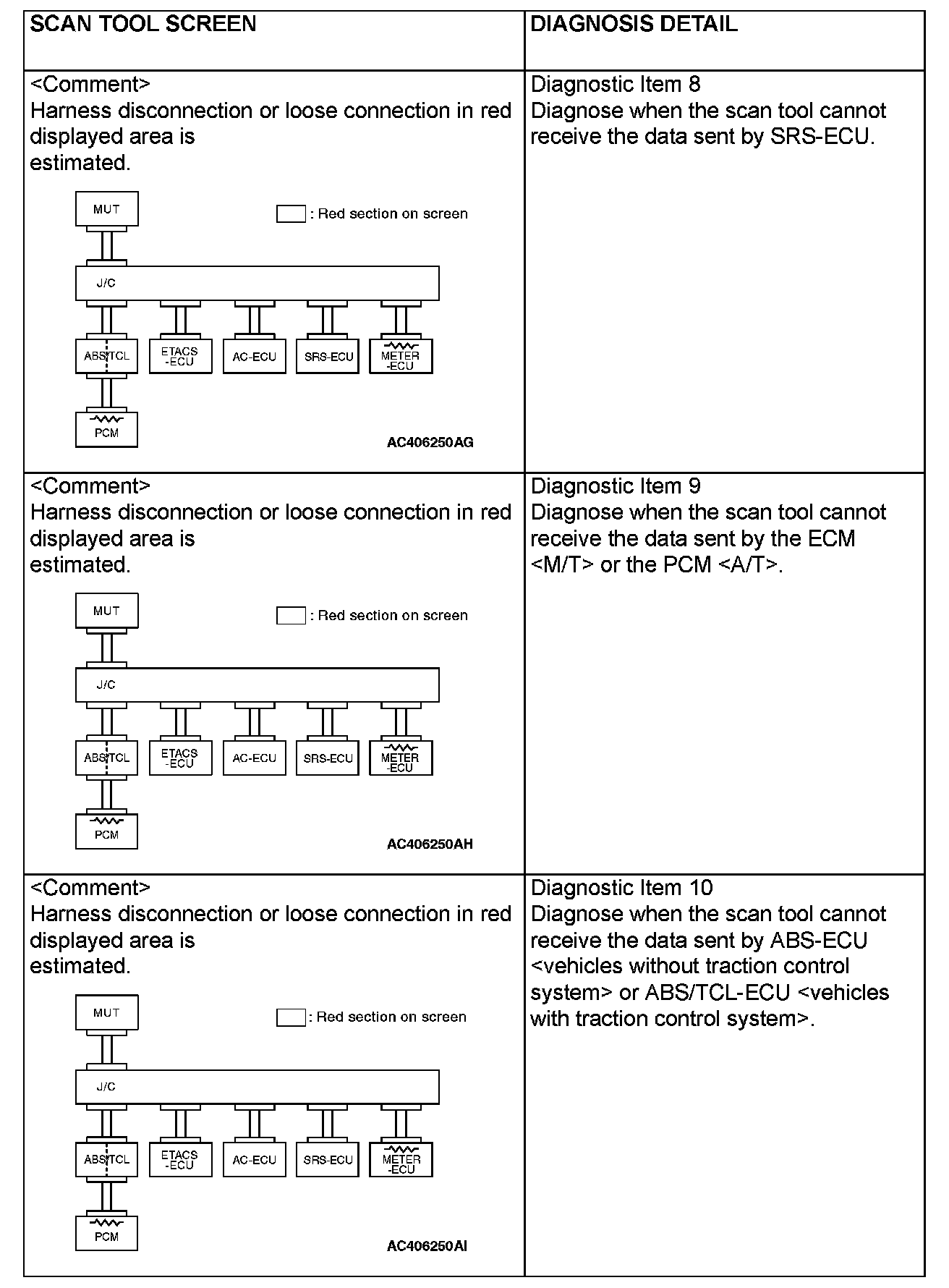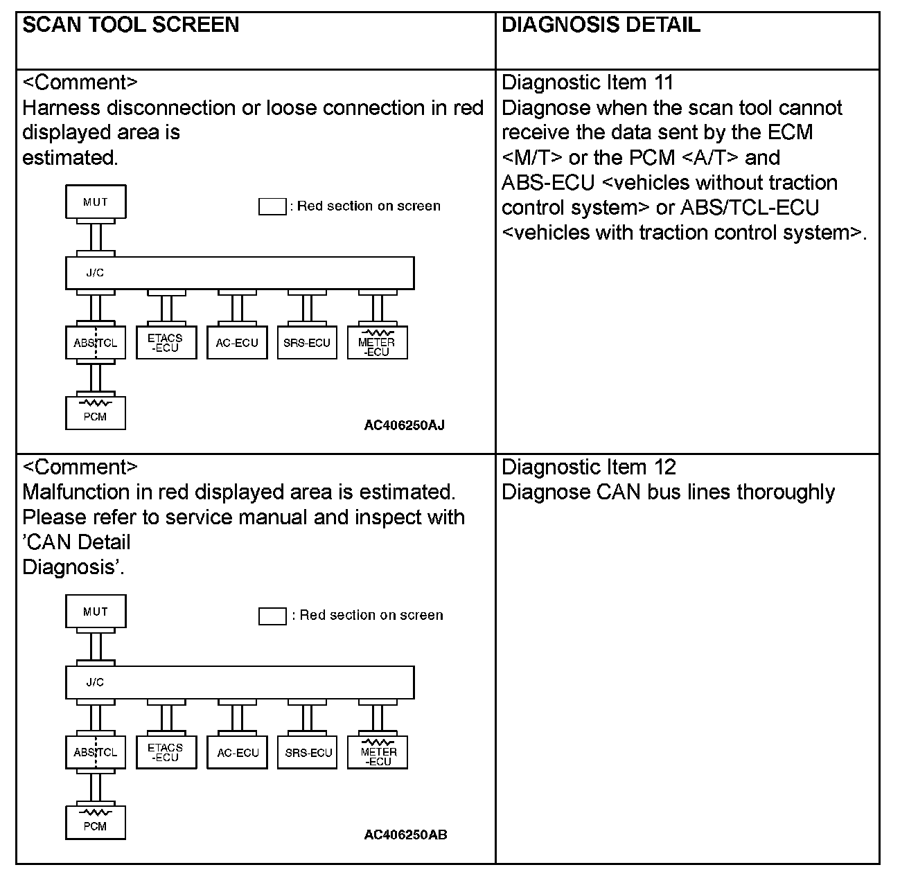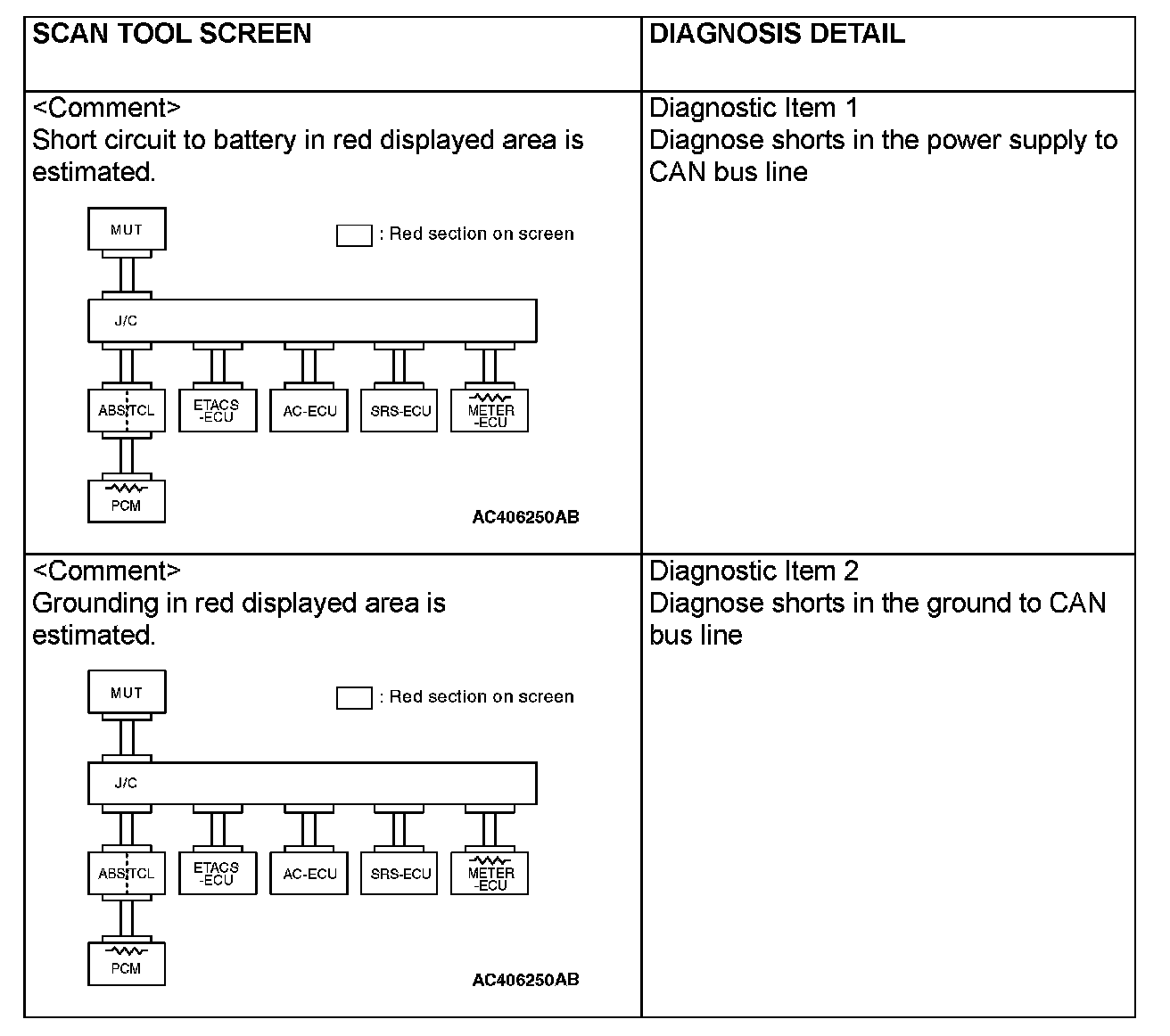 NOTE: If the screen other than above is displayed, troubles are present at two or more spots. In this case, diagnose CAN bus lines by referring to the trouble spot pinpoint procedures.