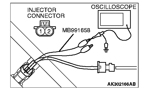 2. Connect the oscilloscope probe to injector connector terminal No. 2.