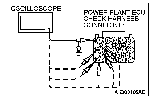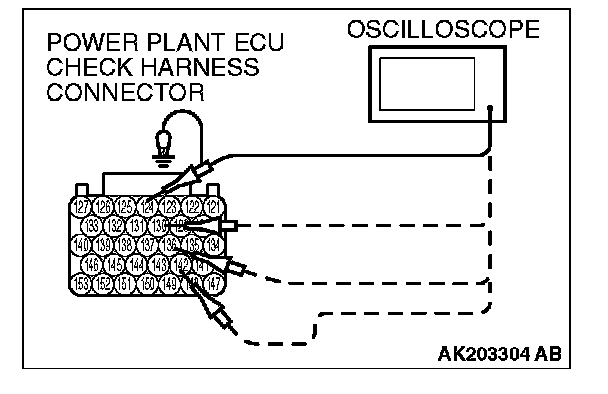 3. Connect the oscilloscope to check harness terminal No. 103. (Check the crankshaft position sensor signal wave pattern.)