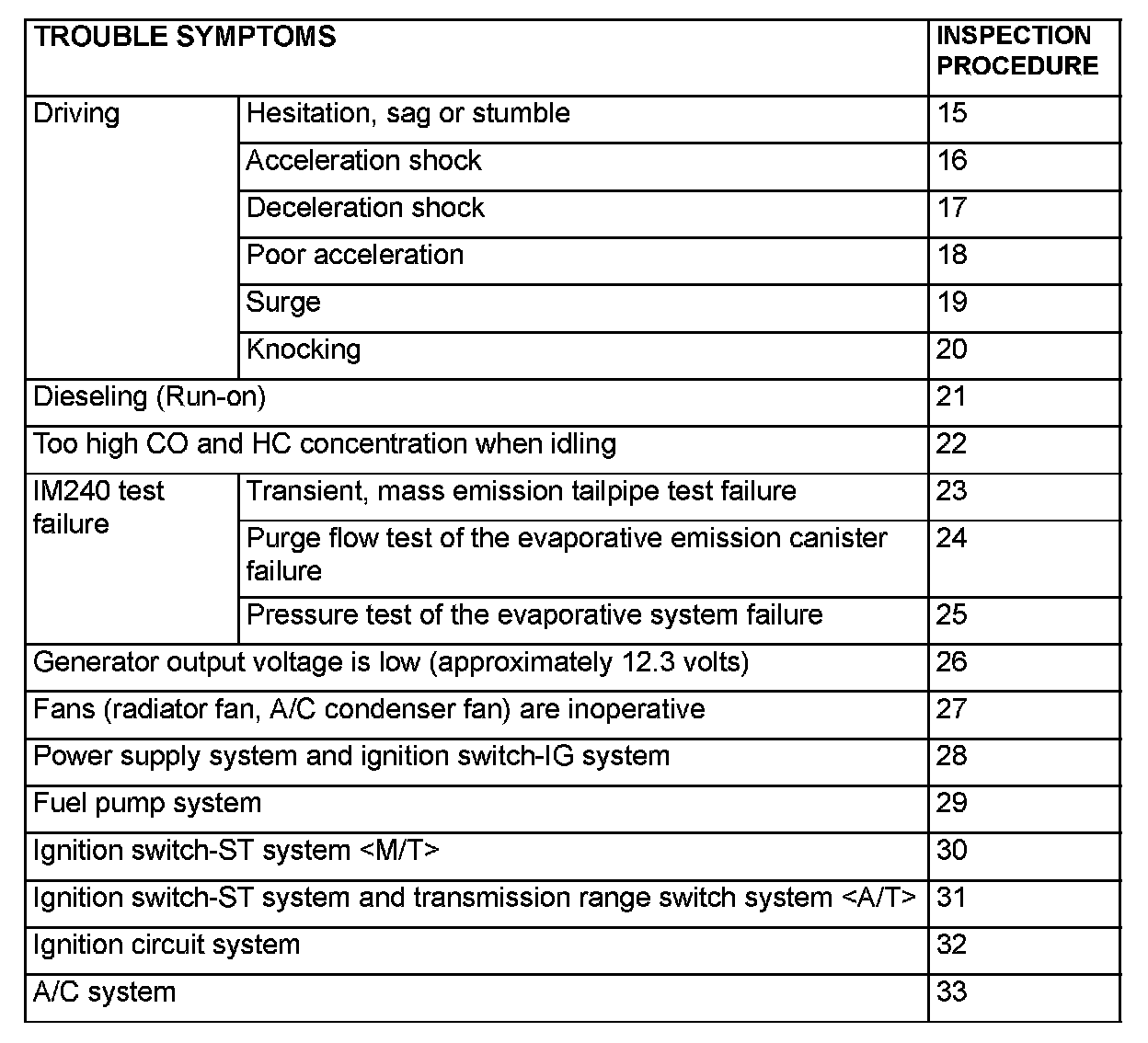 Inspection Chart For Trouble Symptoms Part 2: