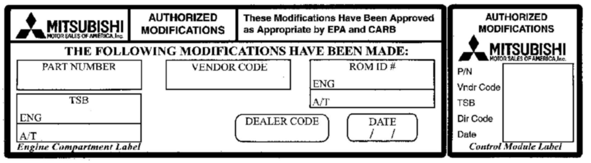 ^ "Engine Compartment/Control Module" labels - p/n MSSF-024G-00