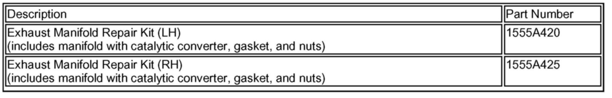 ^ If an affected vehicle has a Service Engine Soon (SES) lamp on and DTC P0421 (RH) and/or P0431 (LH) set before reprogramming the PCM. Replace only the necessary warm-up catalytic converter, using an exhaust manifold repair kit.