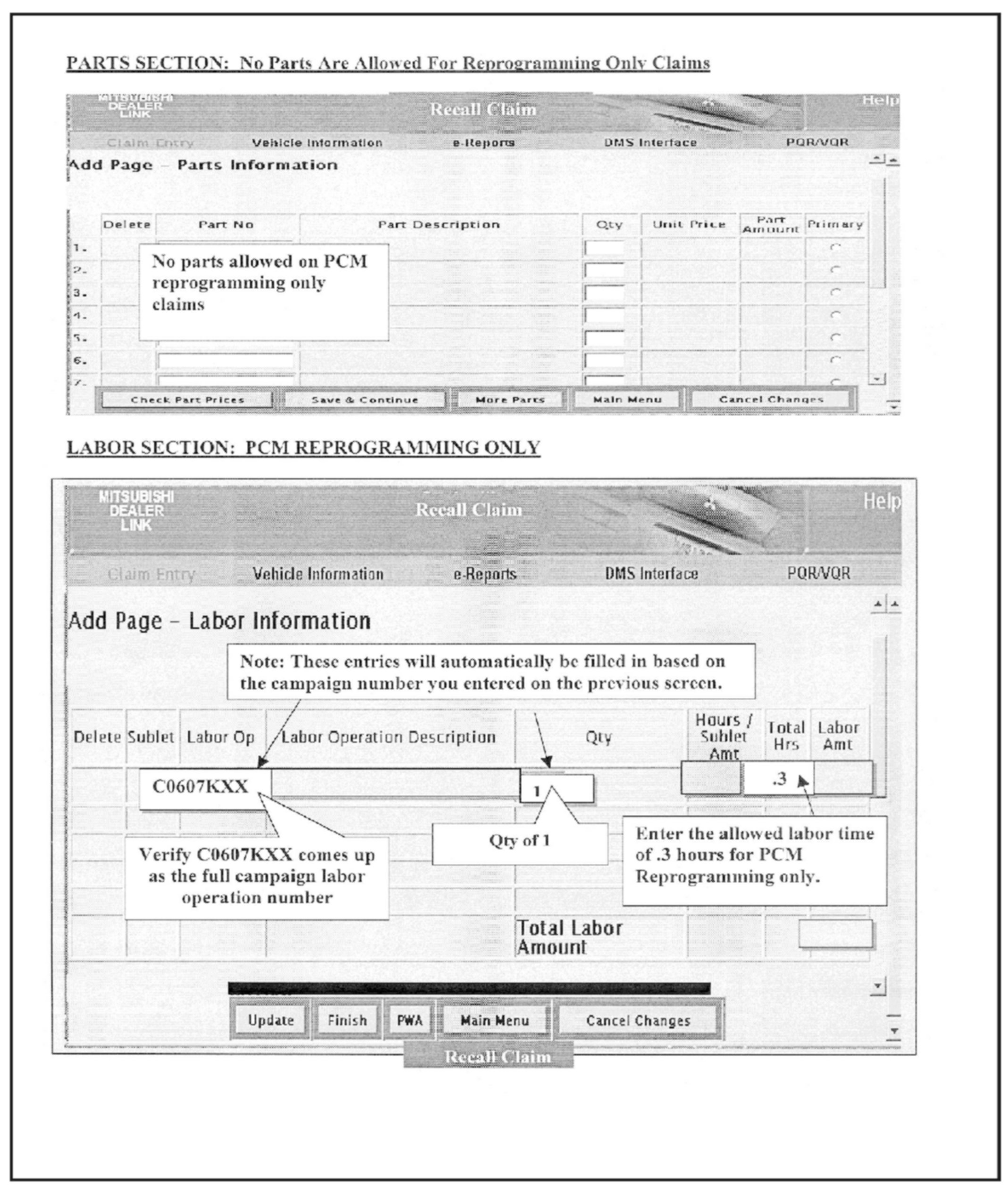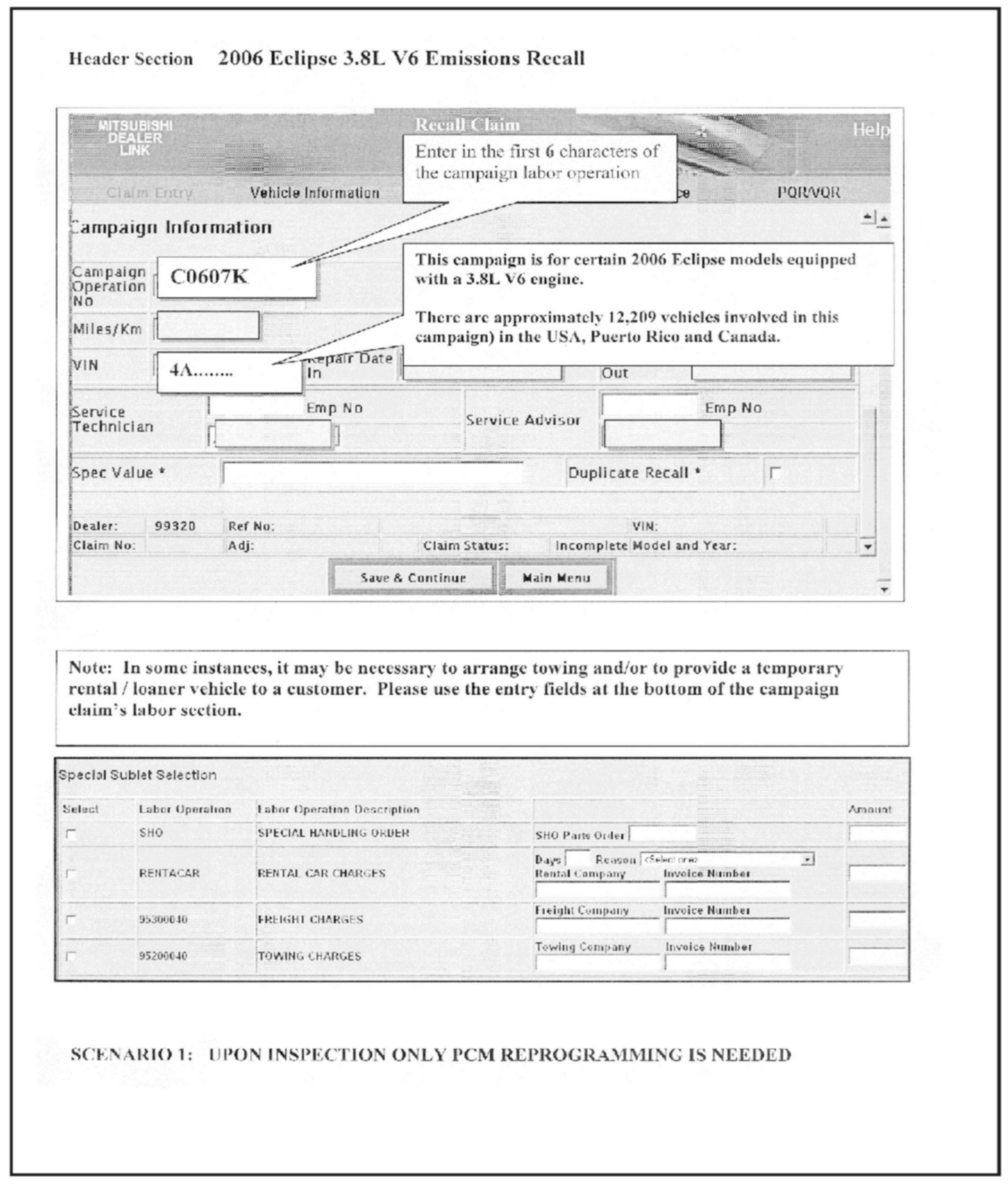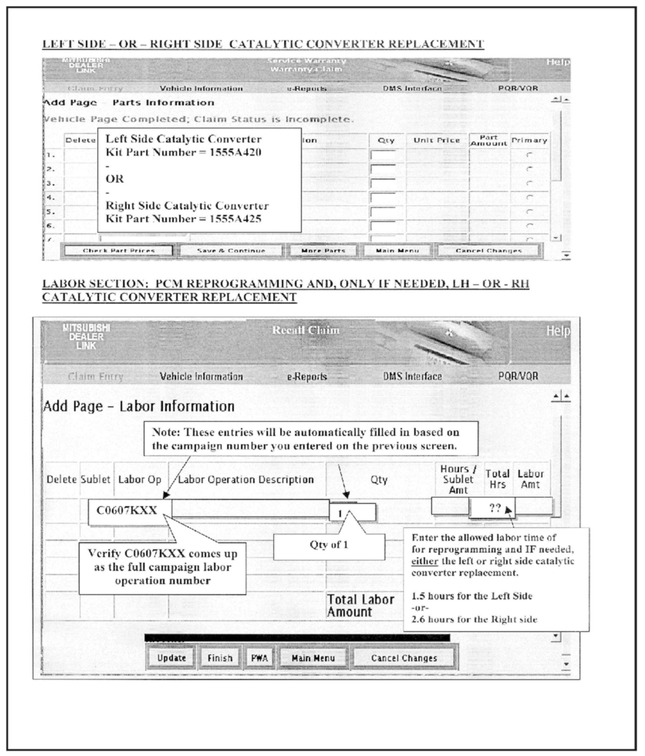 Claims for this campaign must be entered as recall Type "C" claims in the Mitsubishi Dealer Link (MDL).
