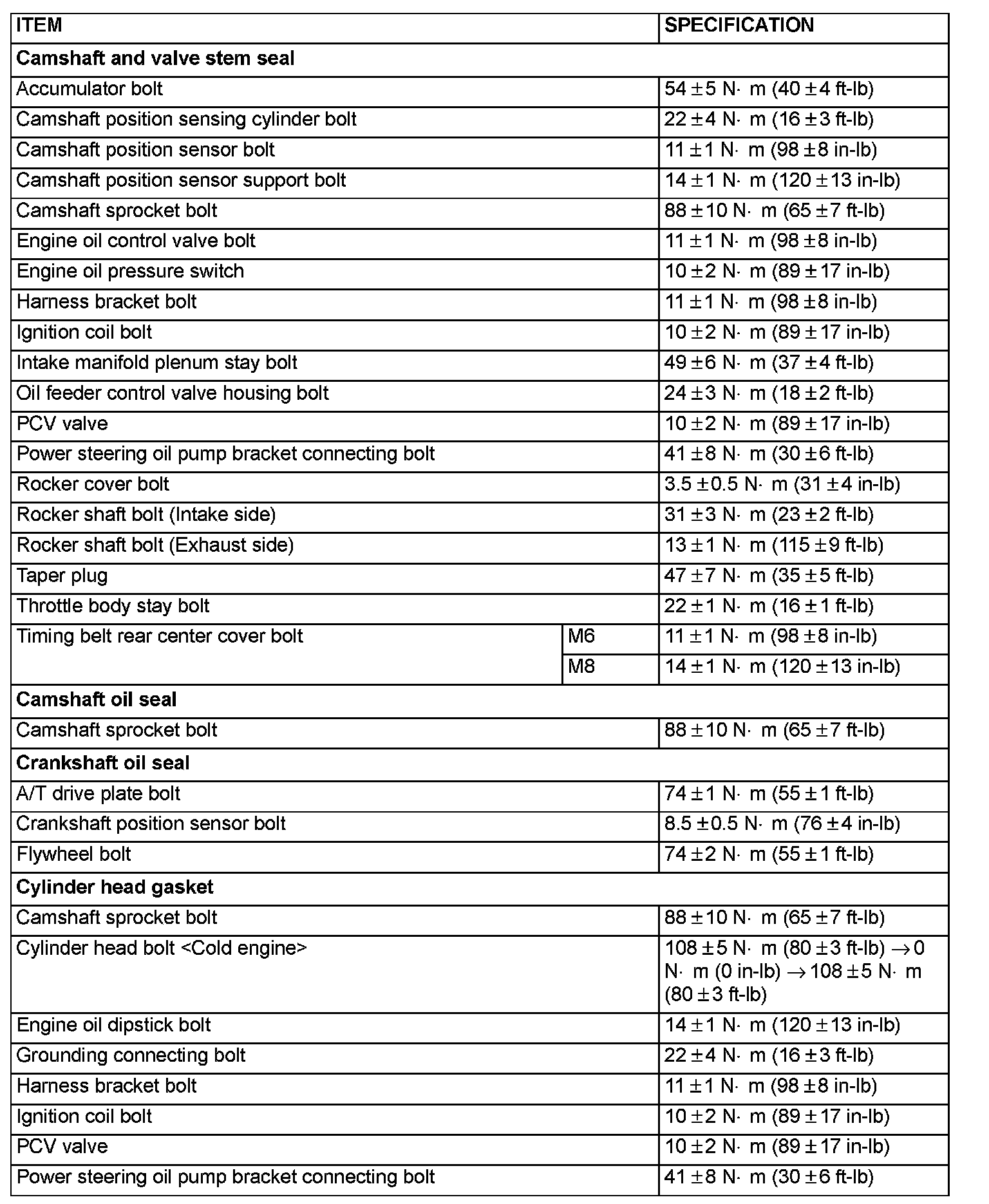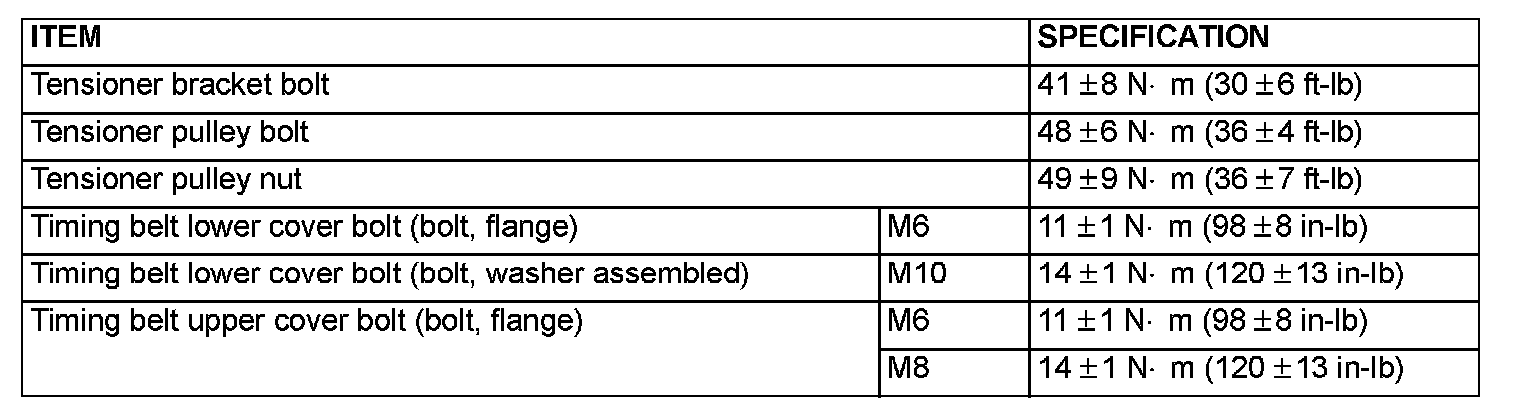 FASTENER TIGHTENING SPECIFICATIONS: