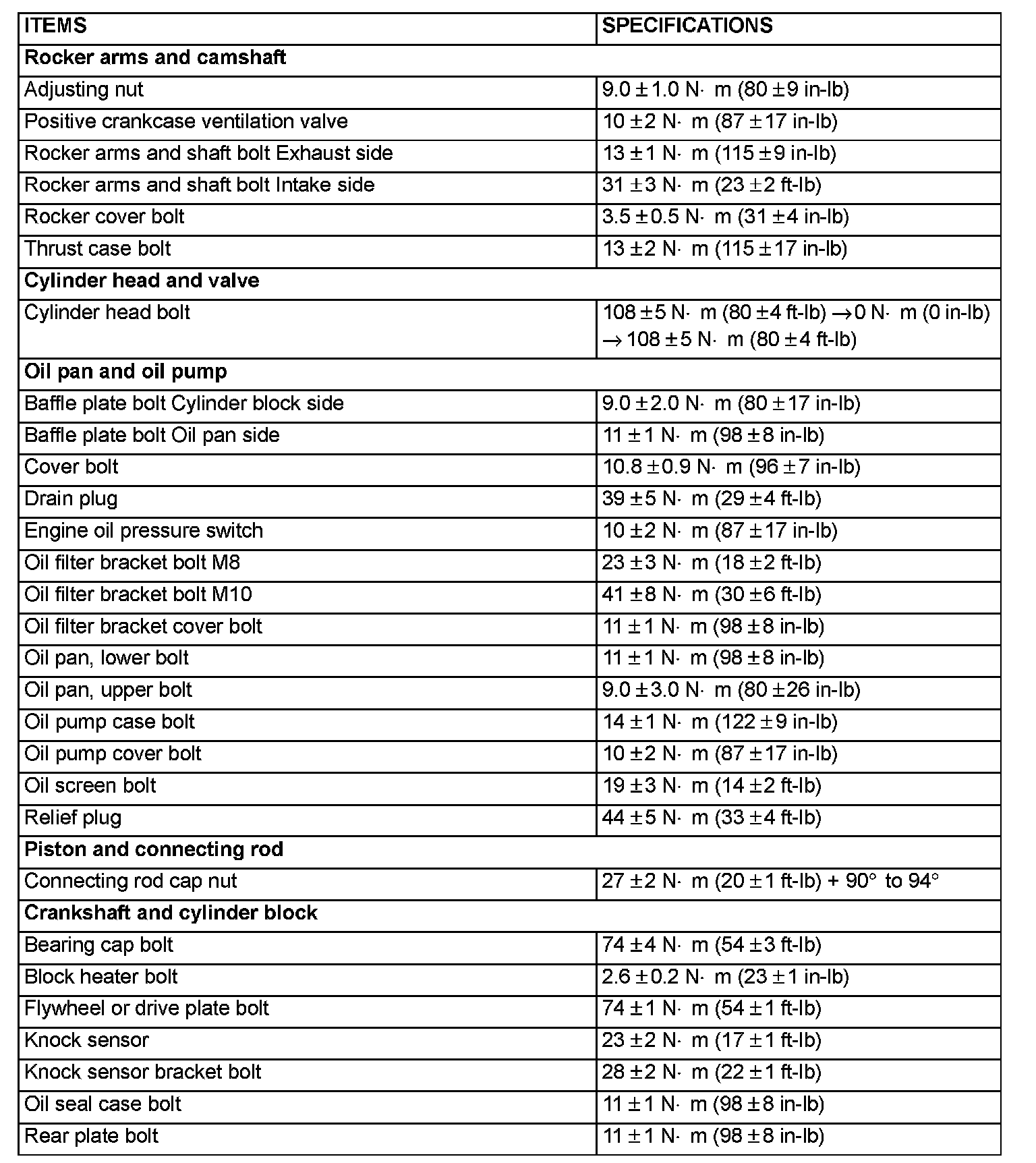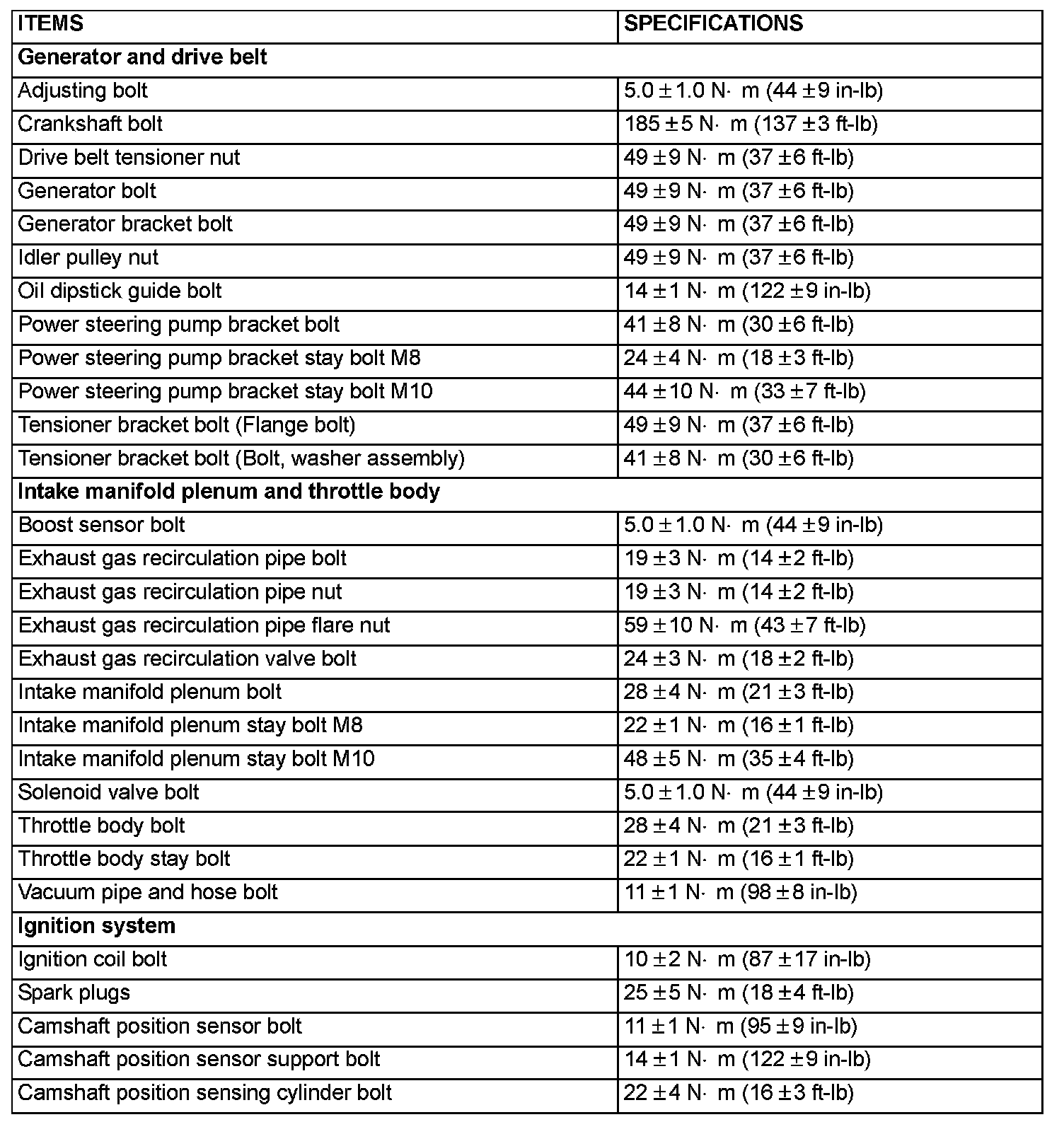 FASTENER TIGHTENING SPECIFICATIONS: