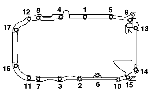 Tighten the upper oil pan bolts in the sequence shown.