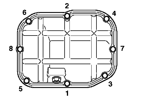 Tighten the lower oil pan bolts in the sequence shown.