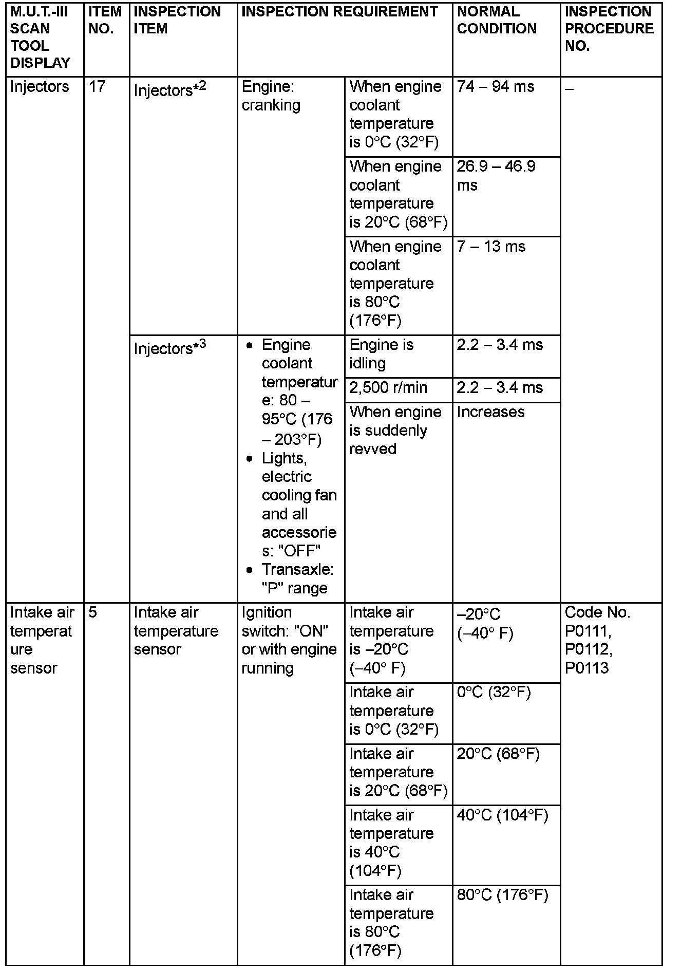 NOTE: *3: In a new vehicle [driven approximately 500 km (311 mile) or less], the injector drive time is sometimes 10% longer than the standard time.