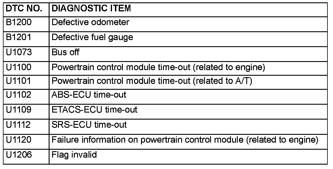 DIAGNOSTIC TROUBLE CODE CHARTB1200 - U1206: