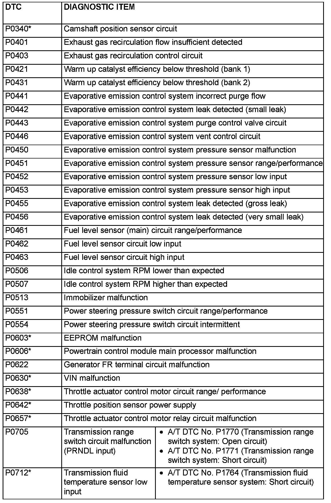 The content of this article reflects the changes identified in TSB-08-13-001.DIAGNOSTIC TROUBLE CODE CHART