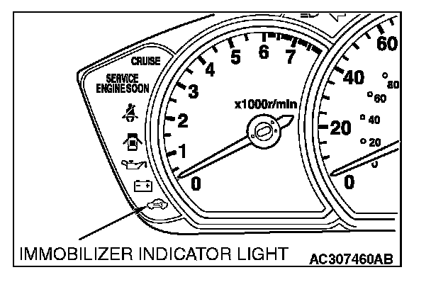 NOTE: When an error occurs while the immobilizer indicator light is flashing, the immobilizer indicator light extinguishes