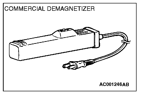 CAUTION: If the tip of demagnetizer touches the roof panel, the magnetizing condition of body becomes worse to the contrary Absolutely avoid this