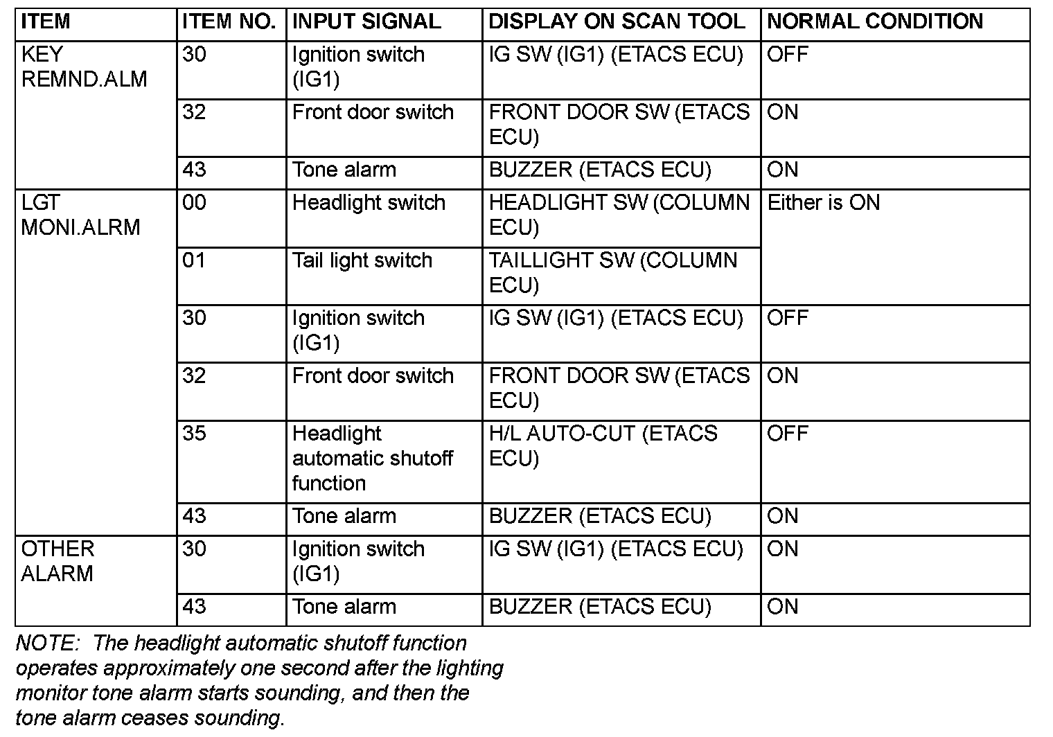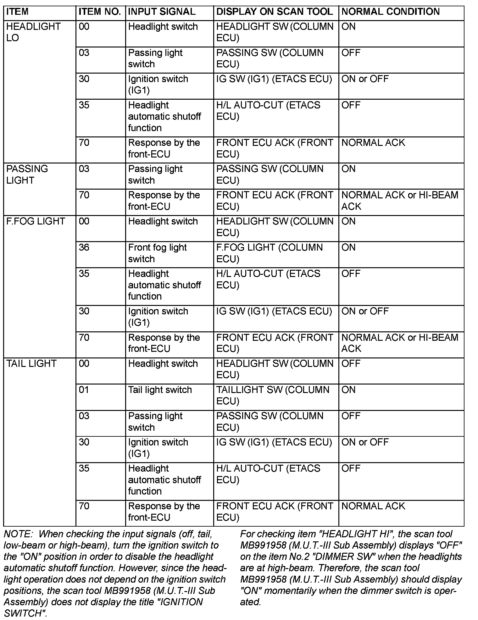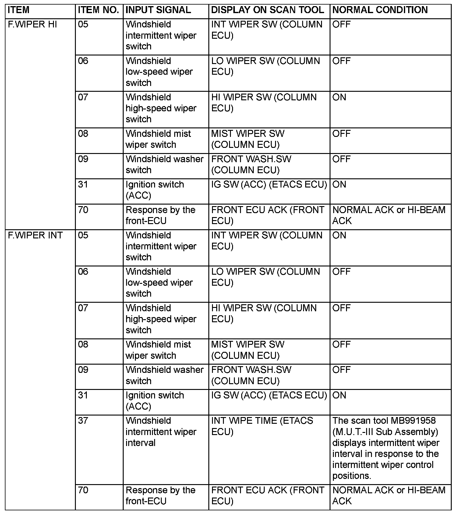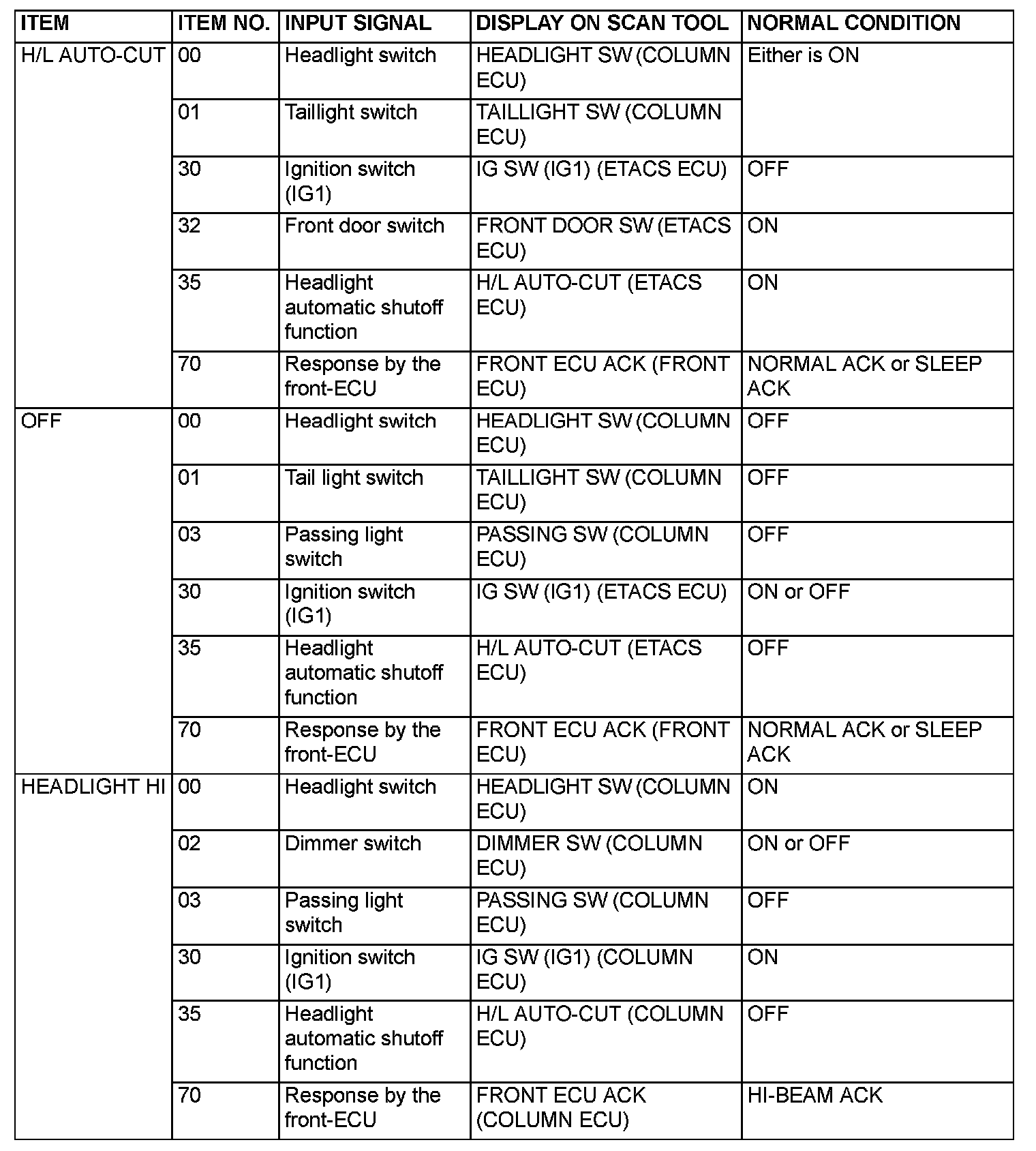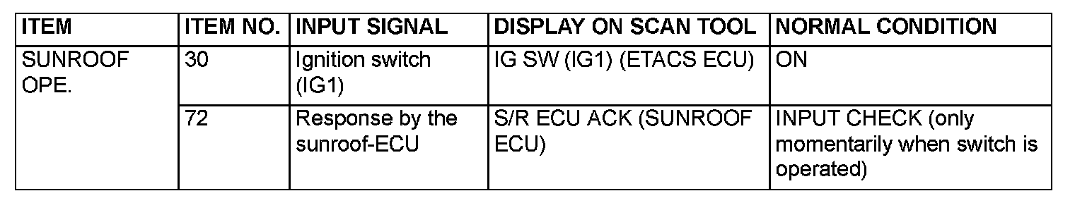 [FUNCTION DIAGNOSIS]The table the service data and their normal condition, which are displayed during the "Function Diag." The column "Normal condition" shows values that are shown when each operation is made. .