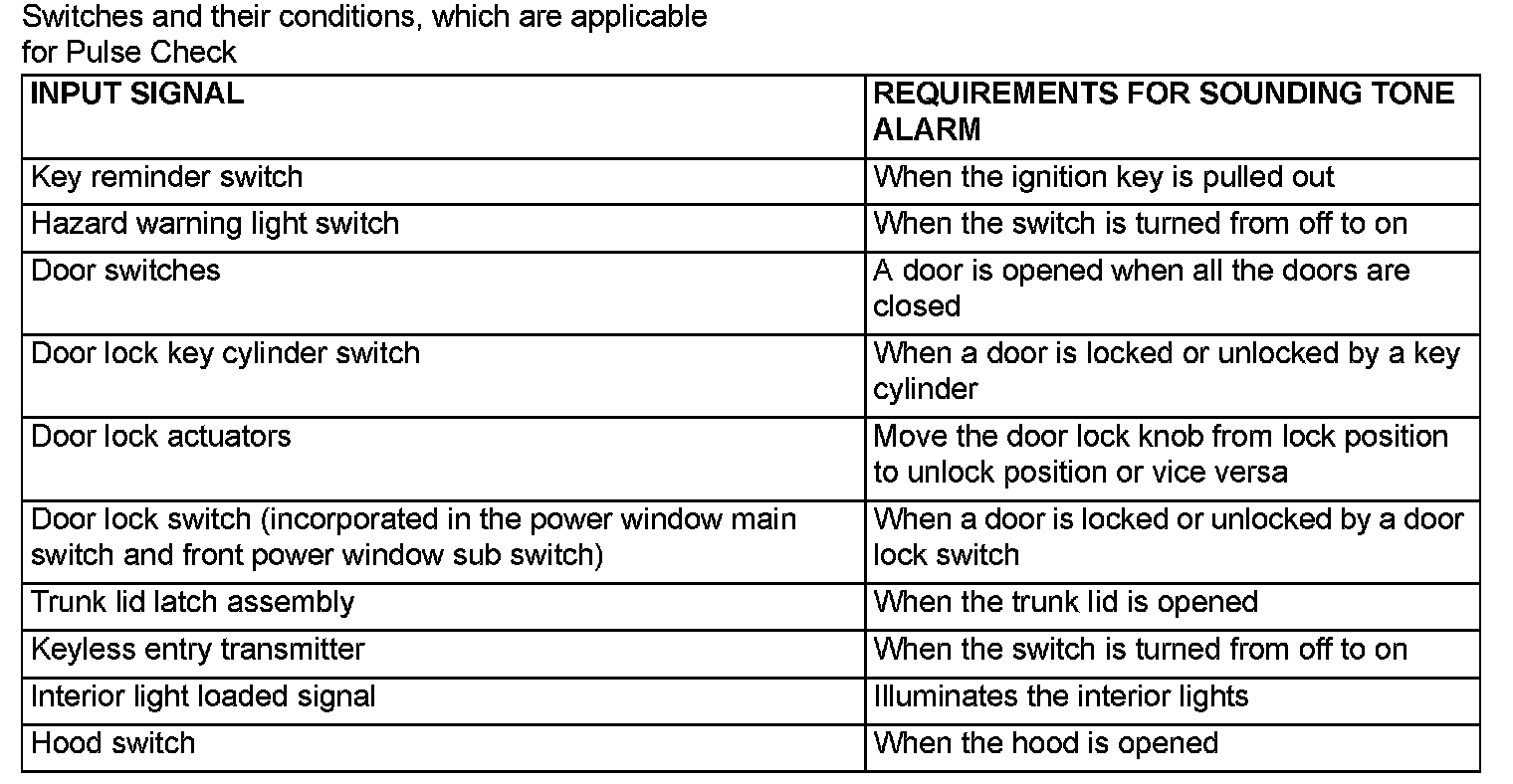 PULSE CHECK1. The input signals (signals other than SWS communication line signals), which are compatible with the SWS monitor by using the scan tool MB991958 (M.U.T.-III Sub Assembly) or voltmeter, can be confirmed by the Pulse Check.