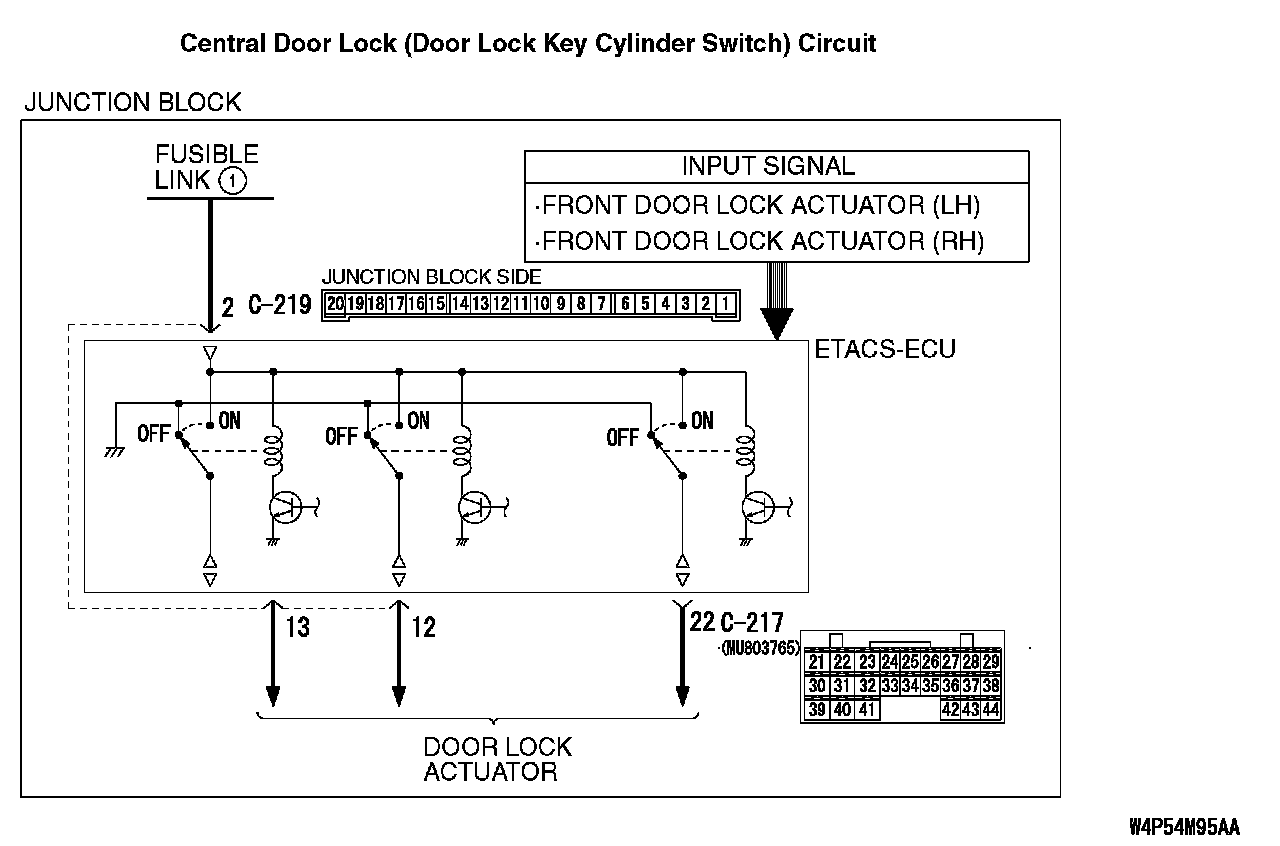INSPECTION PROCEDURE C-5: Central Door Locking System: All the Doors do not Lock or Unlock with just the Driver's or Front Passenger's inside Lock Knob Operation.Center Door Lock (Door Lock Key Cylinder Switch) Circuit: