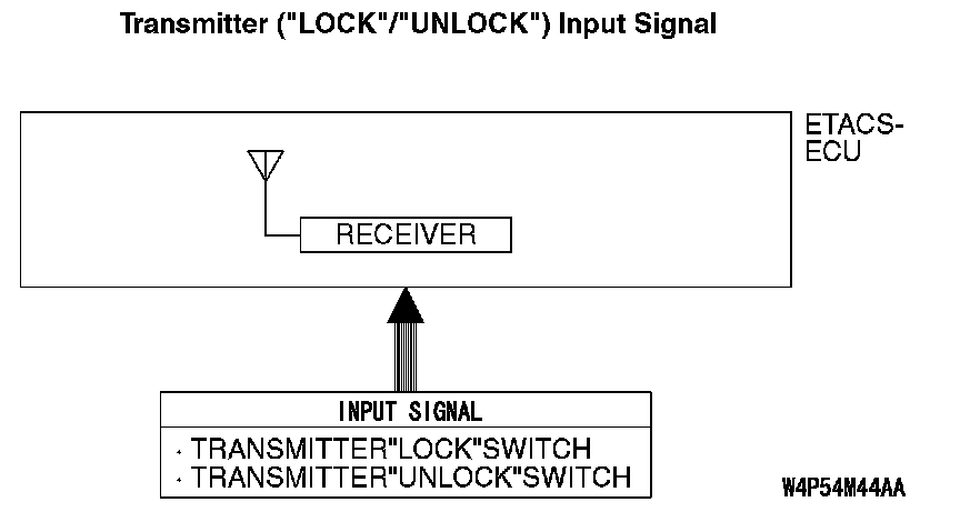 A receiver is incorporated in the ETACS-ECU. This receiver receives a lock or unlock signal from the transmitter.