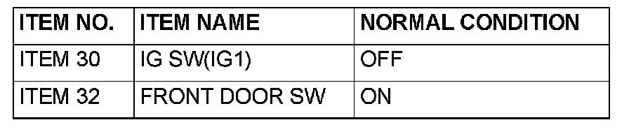 Normal condition is not displayed for "IG SW (IG1)" : Refer to INSPECTION PROCEDURE M-2 "ETACS-ECU does not receive any signal from the ignition switch (IG1)."