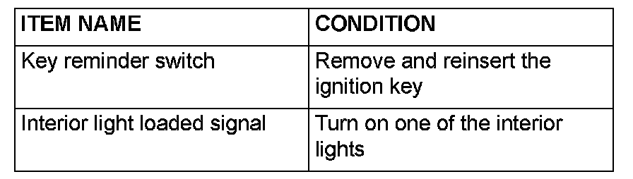 When one of the interior lights is illuminated, scan tool MB991958 does not sound : Refer to INSPECTION PROCEDURE N-9 "ETACS-ECU does not receive any interior light loaded signal."