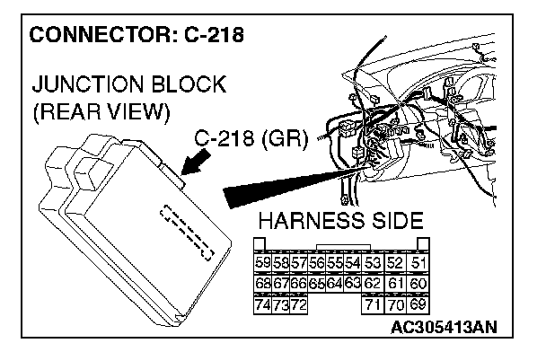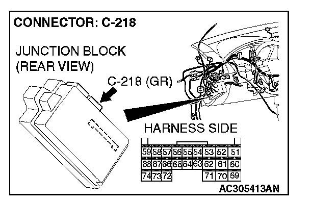STEP 4. Check ETACS-ECU connector C-218 for loose, corroded or damaged terminals, or terminals pushed back in the connector.