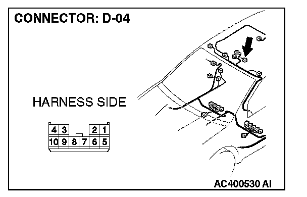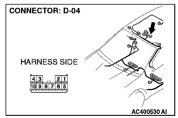 STEP 2. Check sunroof motor assembly connector D-04 and ETACS-ECU connector C-218 for loose, corroded or damaged terminals, or terminals pushed back in the connector.