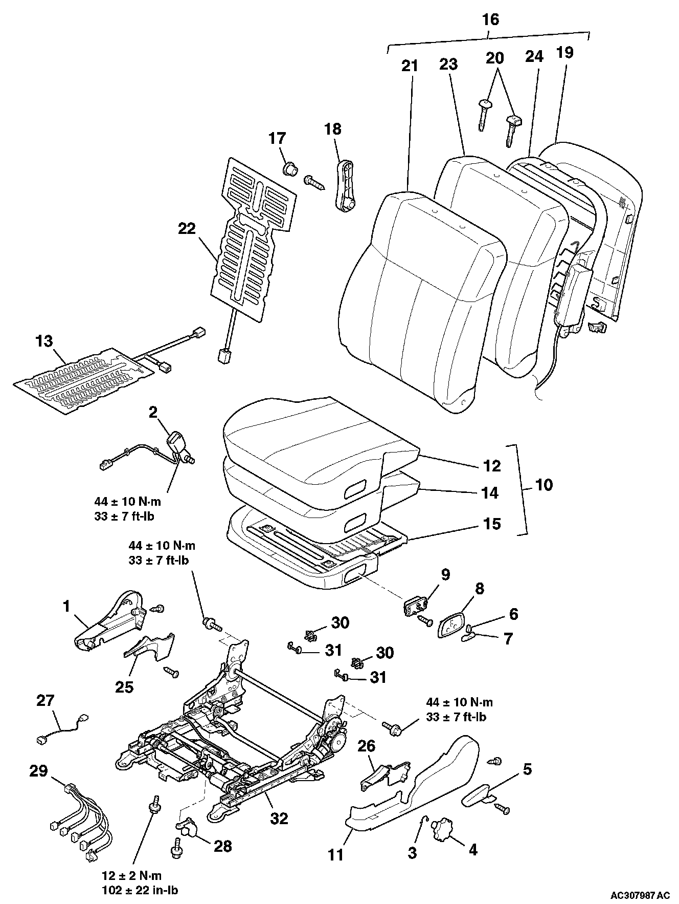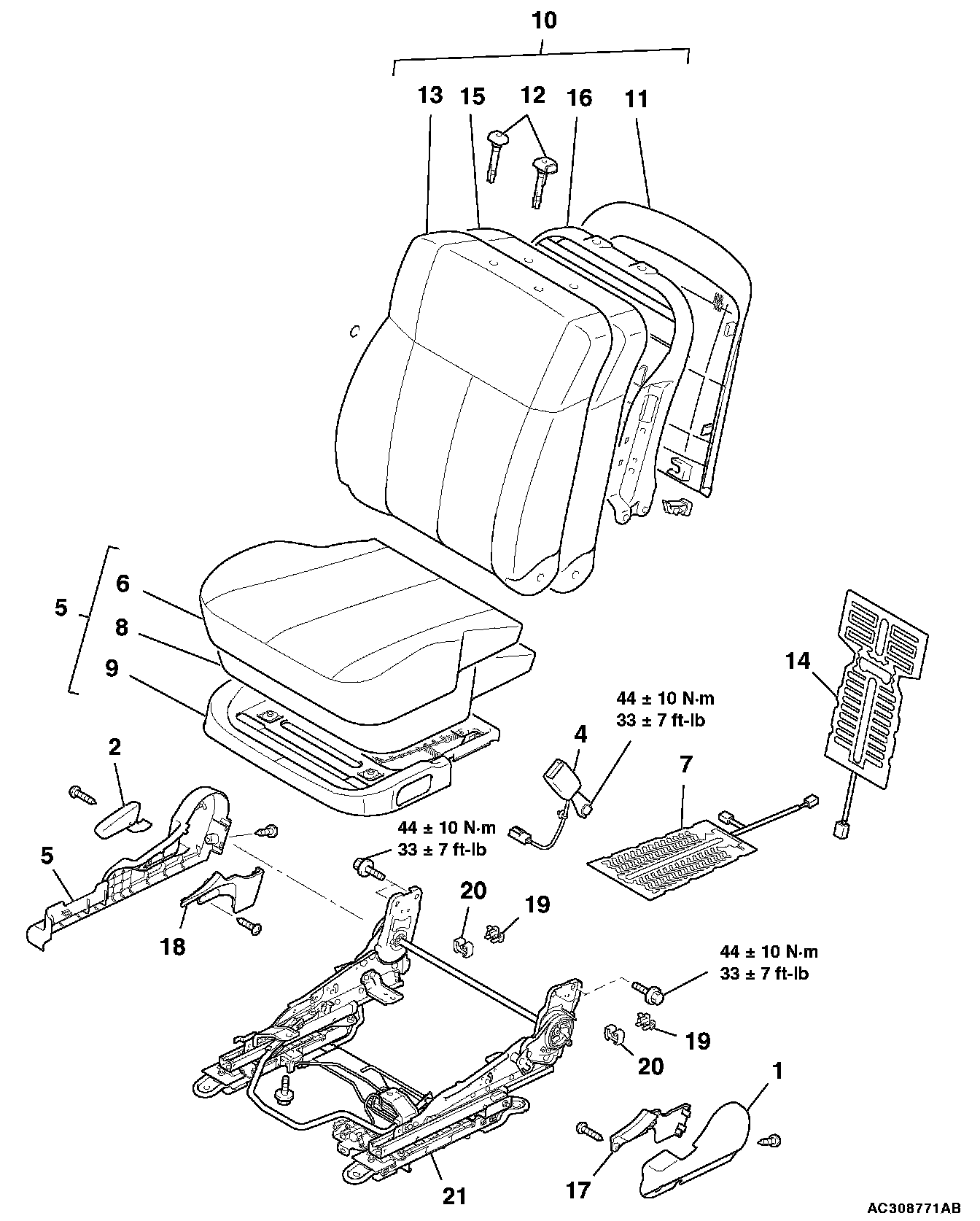 WARNING: Never attempt to disassemble or repair the seat slide sensor. If faulty, replace it.