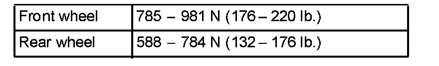 ^ When testing the front brakes, apply the parking brake. When testing the rear brakes, stop the front wheels with chocks.