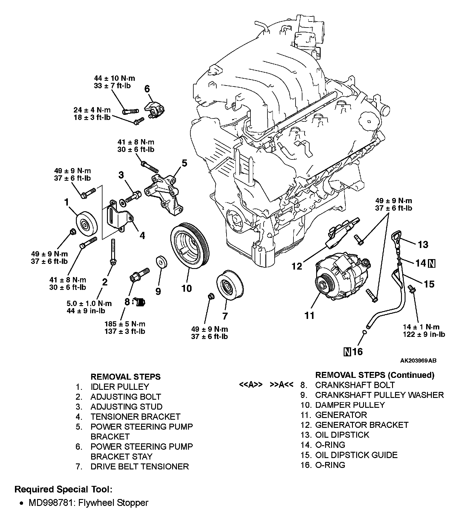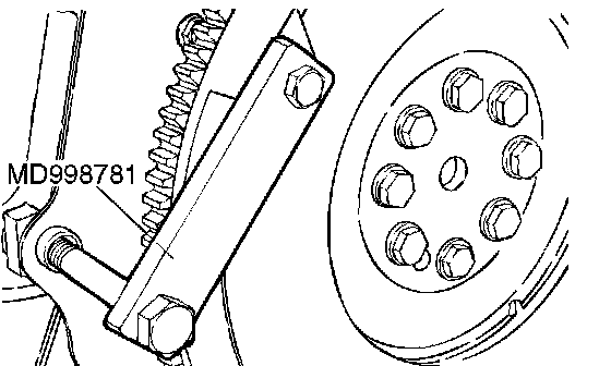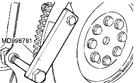 1. Using special tool MD998781, hold the drive plate.