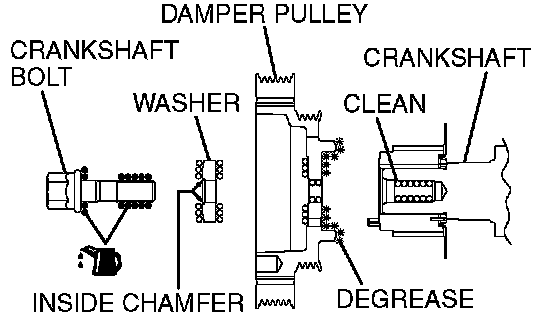 2. Clean the bolt hole in crankshaft bolt, damper pulley seating surface and the washer.