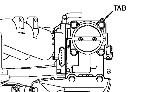 Install the throttle body gasket so that the tab is positioned as shown in the illustration.