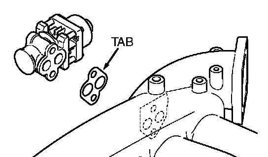 Install the exhaust gas recirculation valve gasket so that the tab is positioned as shown in the illustration.