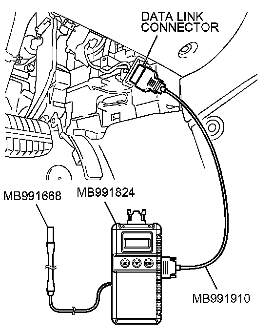 1. Connect scan tool MB991958 to the data link connector.