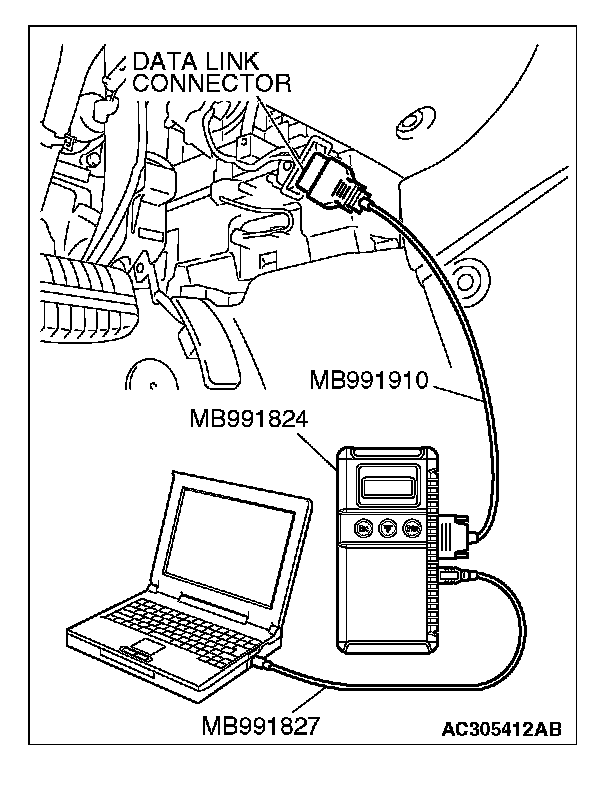 1. Connect scan tool MB991958 to the data link connector.