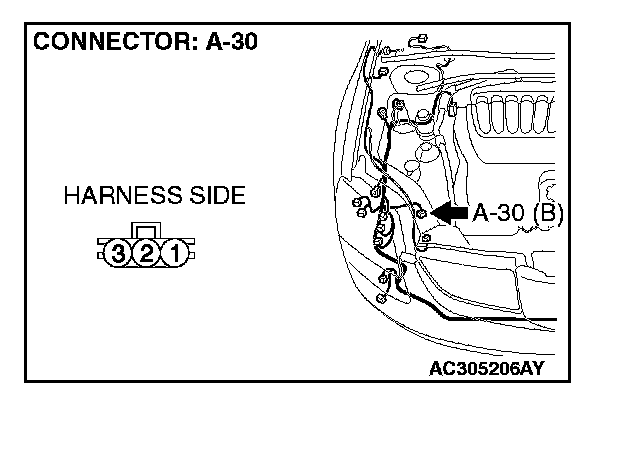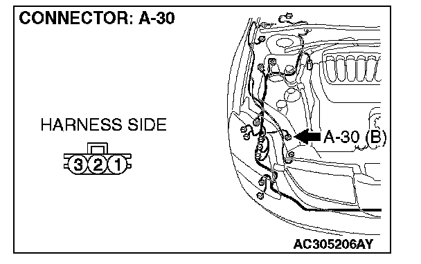 STEP 3. Check A/C pressure sensor connector A-30 for loose, corroded or damaged terminals, or terminals pushed back in the connector.