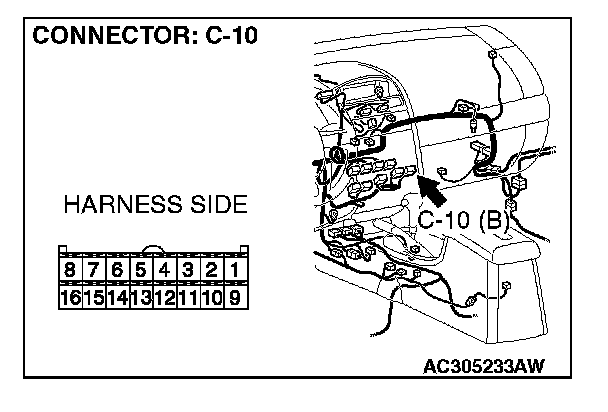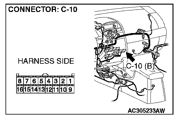 STEP 5. Check A/C-ECU connector C-10 for loose, corroded or damaged terminals, or terminals pushed back in the connector.