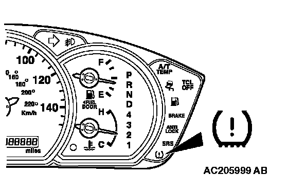 TPMS WARNING LIGHT CHECK1. Check that the TPMS warning light illuminates for approximately three seconds when the ignition switch is turned to the "ON" position. (If it does not illuminate, perform troubleshooting for TPMS Inspection Procedure No. 3.).