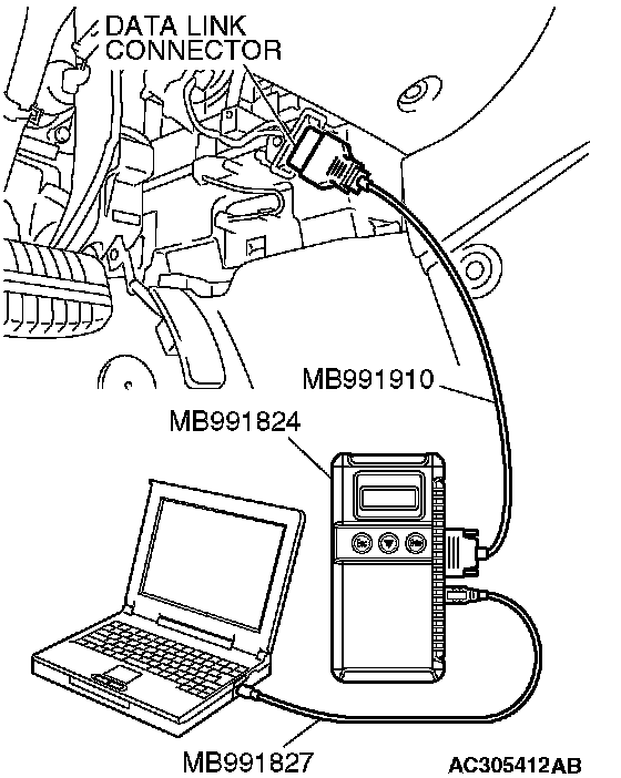 3. Connect special tool MB991827 to special tool MB991824 and the personal computer.