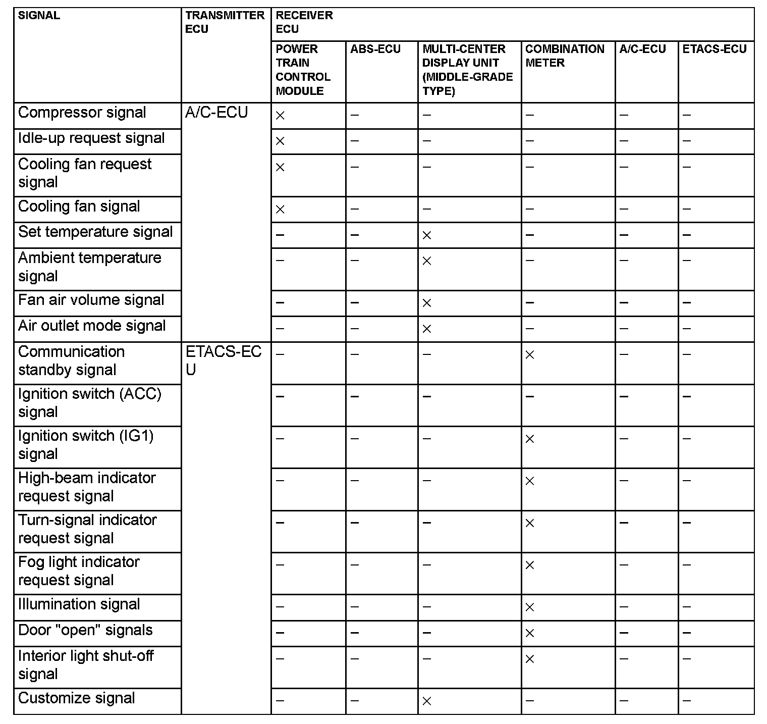 CAN Communication Signal Table Part 1: