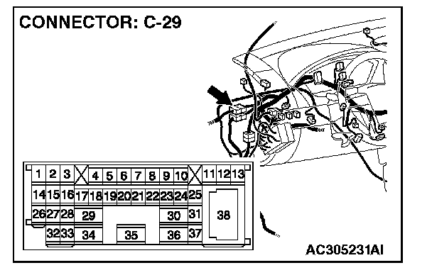 STEP 27. Check intermediate connector C-29 for loose, corroded or damaged terminals, or terminals pushed back in the connector.
