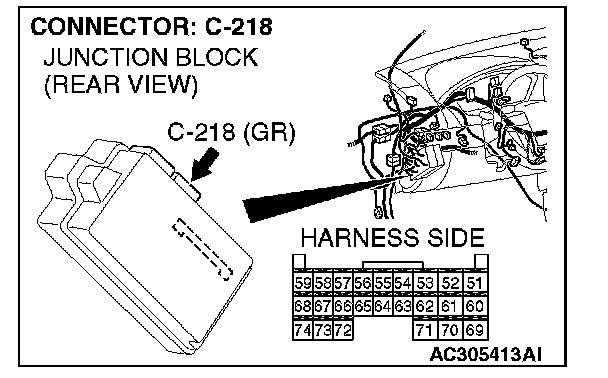 1. Disconnect joint connector (3) C-02 and ETACS-ECU connector C-218, and measure the resistance at the wiring harness side of joint connector (3) C-02.