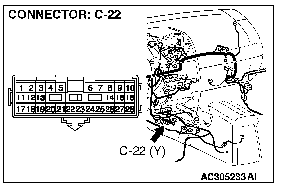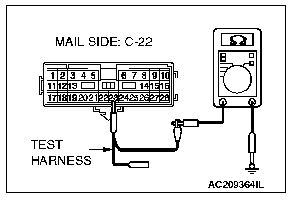 1. Disconnect intermediate connector C-22, and measure the resistance at the male side (at floor wiring harness side).