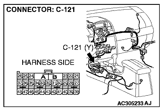 STEP 41. Check SRS-ECU connector C-121 for loose, corroded or damaged terminals, or terminals pushed back in the connector.