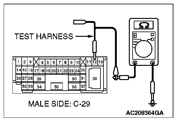1. Disconnect intermediate connector C-29, and measure the resistance at the male side (at front wiring harness side).