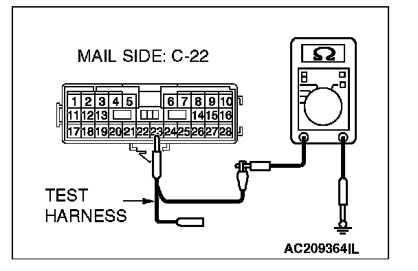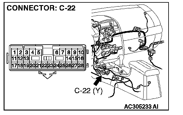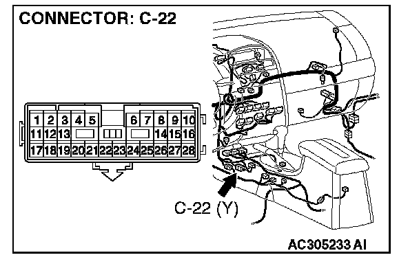 1. Disconnect intermediate connector C-22, and measure the resistance at the male side (at floor wiring harness side).