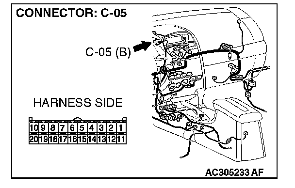 STEP 48. Check multi-center display unit (middle-grade type) connector C-05 for loose, corroded or damaged terminals, or terminals pushed back in the connector.
